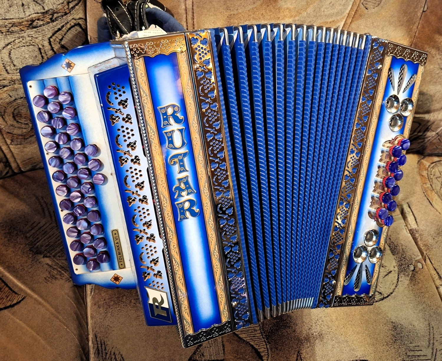RUTAR CFB OTROŠKA HARMONIKA 34 cm RUTAR CFB OTROŠKA HARMONIKA Harmonika je rabljena, solidno ohranjena, s kovčkom. Cena: 2.400 € Smo pooblaščeni serviser za harmonike Beltuna, Hohner, FBB in Weltmeister.